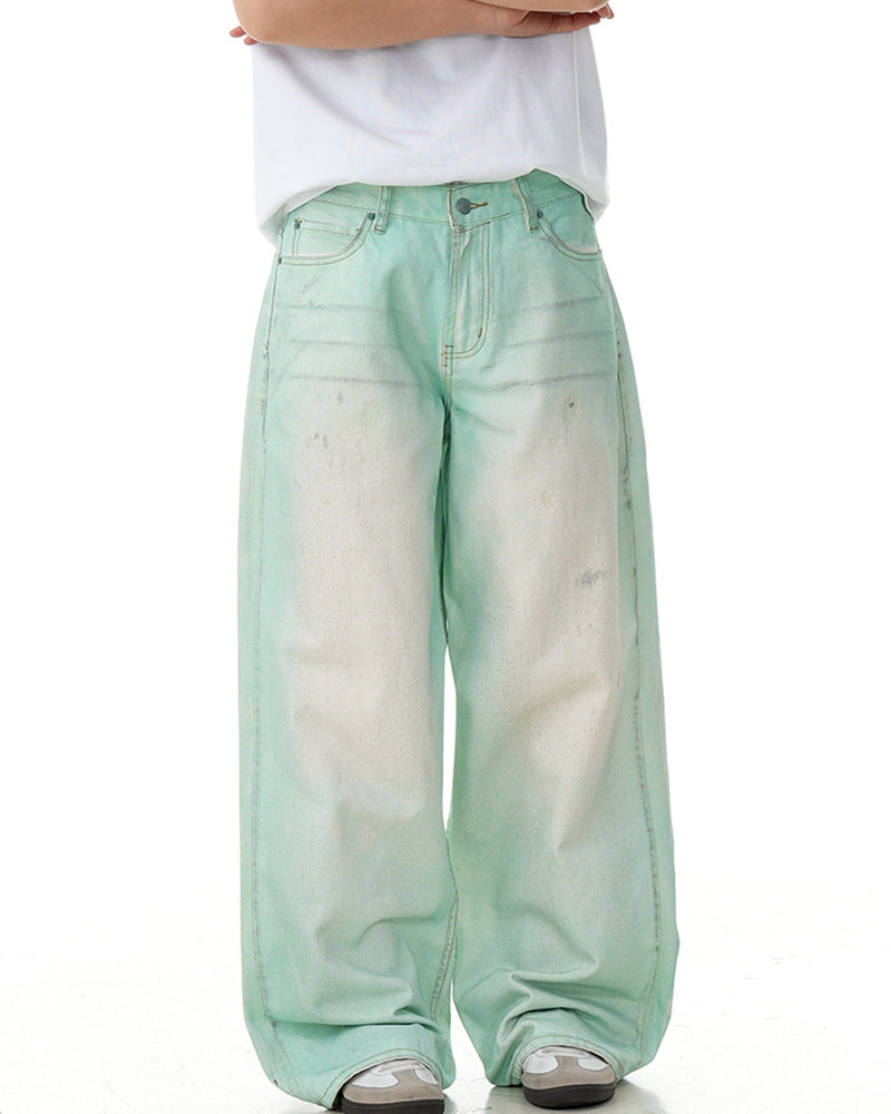 高品質のデニム生地を使用し、クラシックなウォッシュ加工とダメージ加工の技法を組み合わせることで、自然なまだら模様の色彩効果を生み出し、細部までこだわったカジュアルで自由な魅力を放ちます。