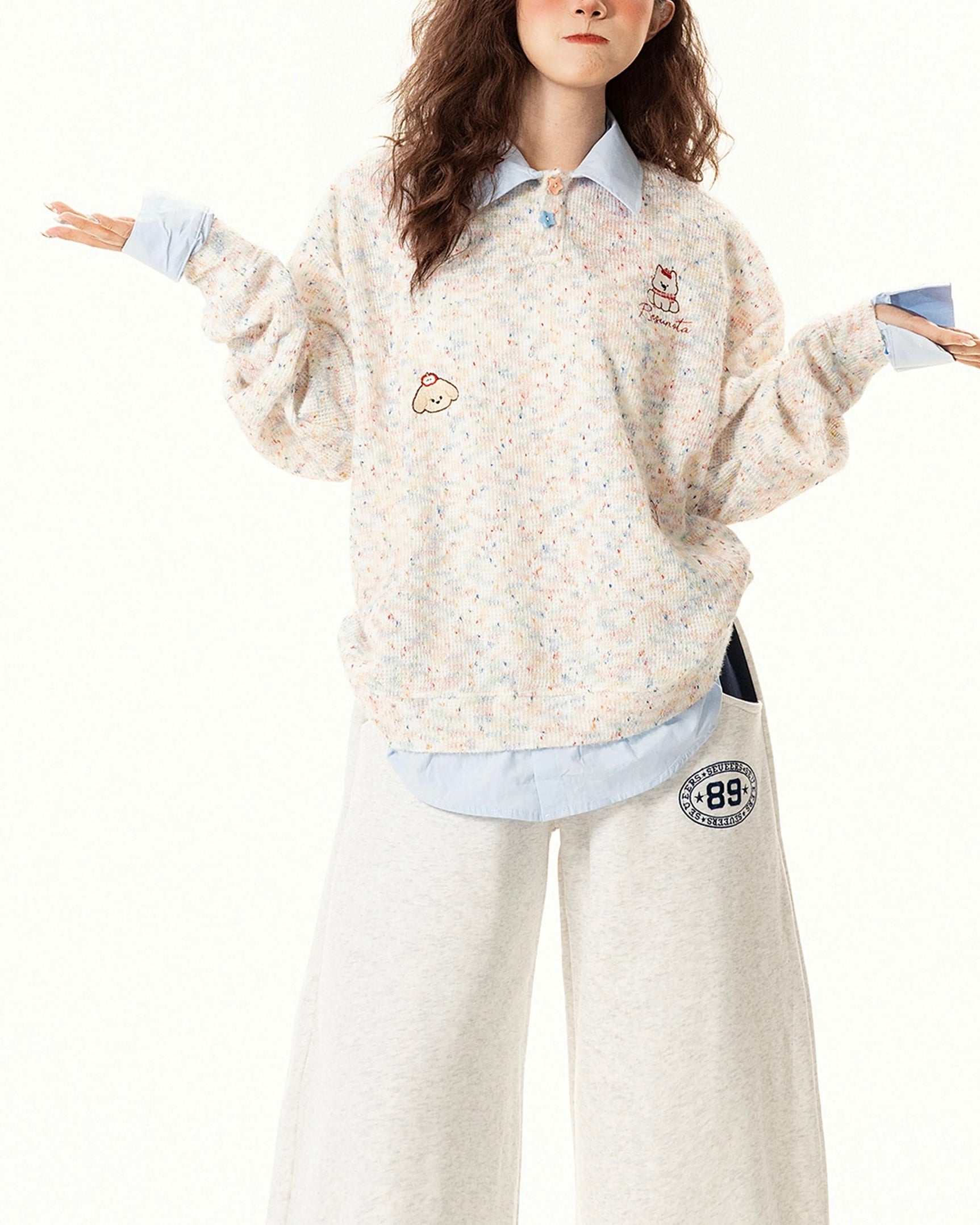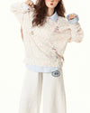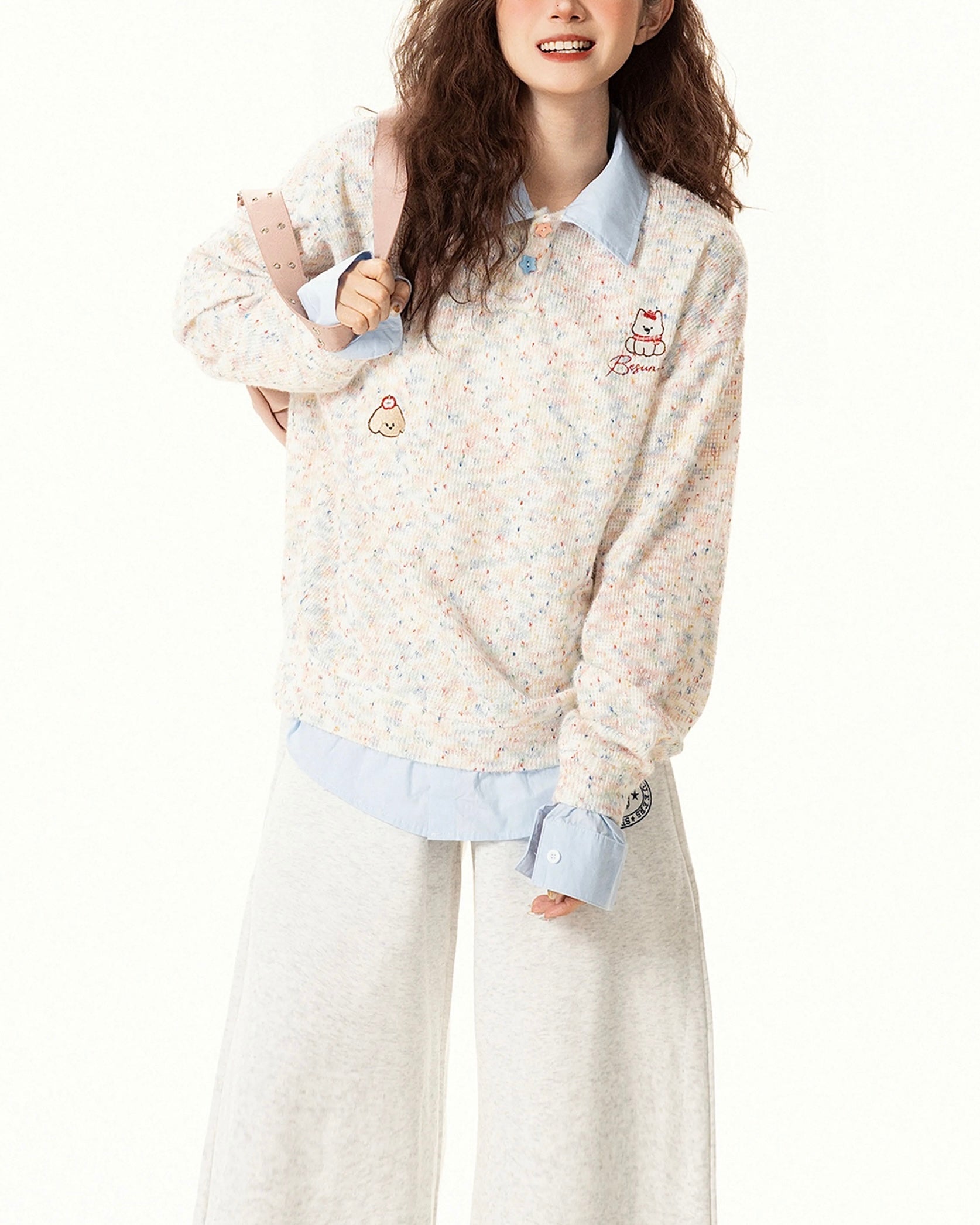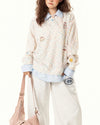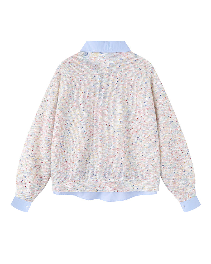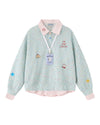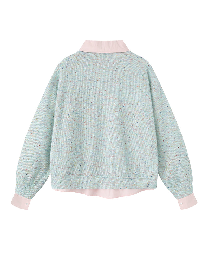 継ぎ合わせたフェイクツーピースラペルスウェットシャツ