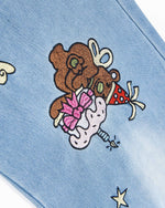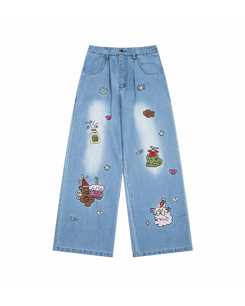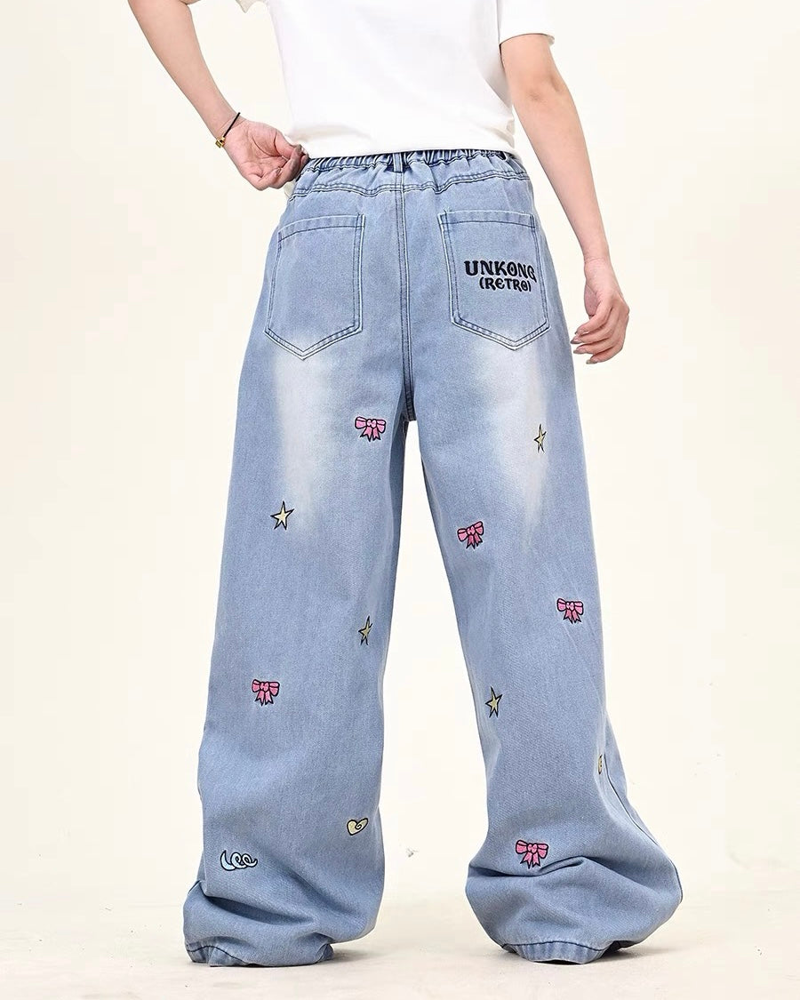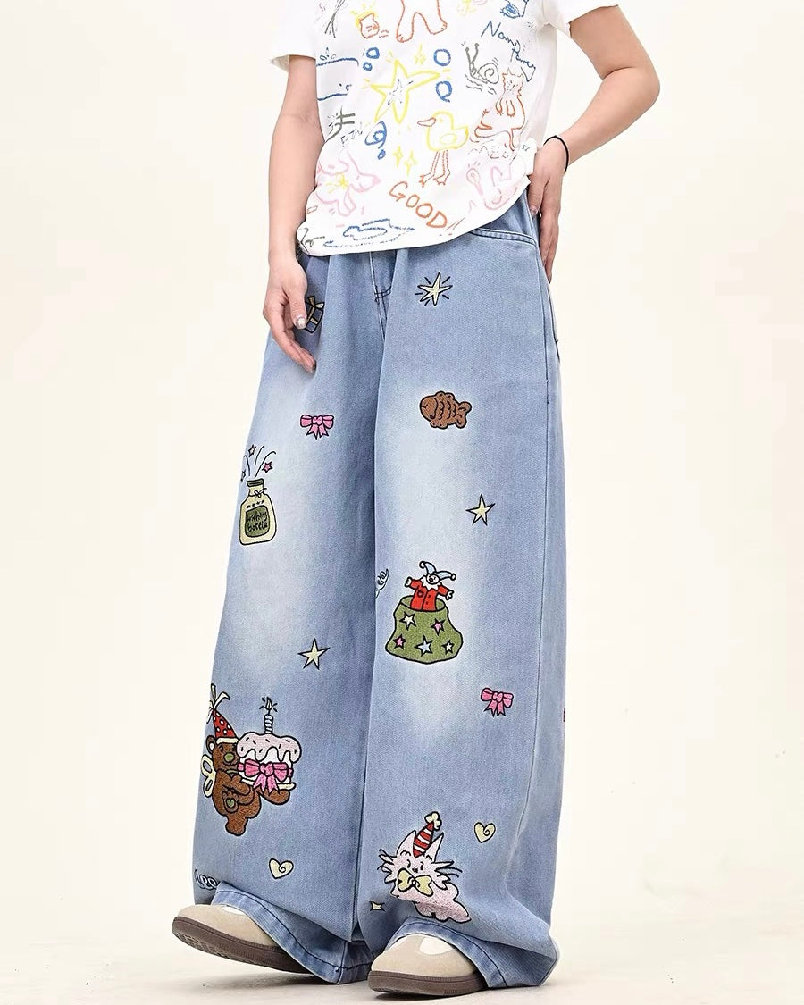 클래식 데님과 재치 넘치는 만화 패턴의 완벽한 조화가 데일리룩에 무한한 재미와 개성을 더합니다. 고품질 데님 소재로 제작된 이 청바지는 편안하고 내구성이 뛰어나며, 신축성이 좋아 일상생활에서 자유롭고 편안하게 활동할 수 있습니다.